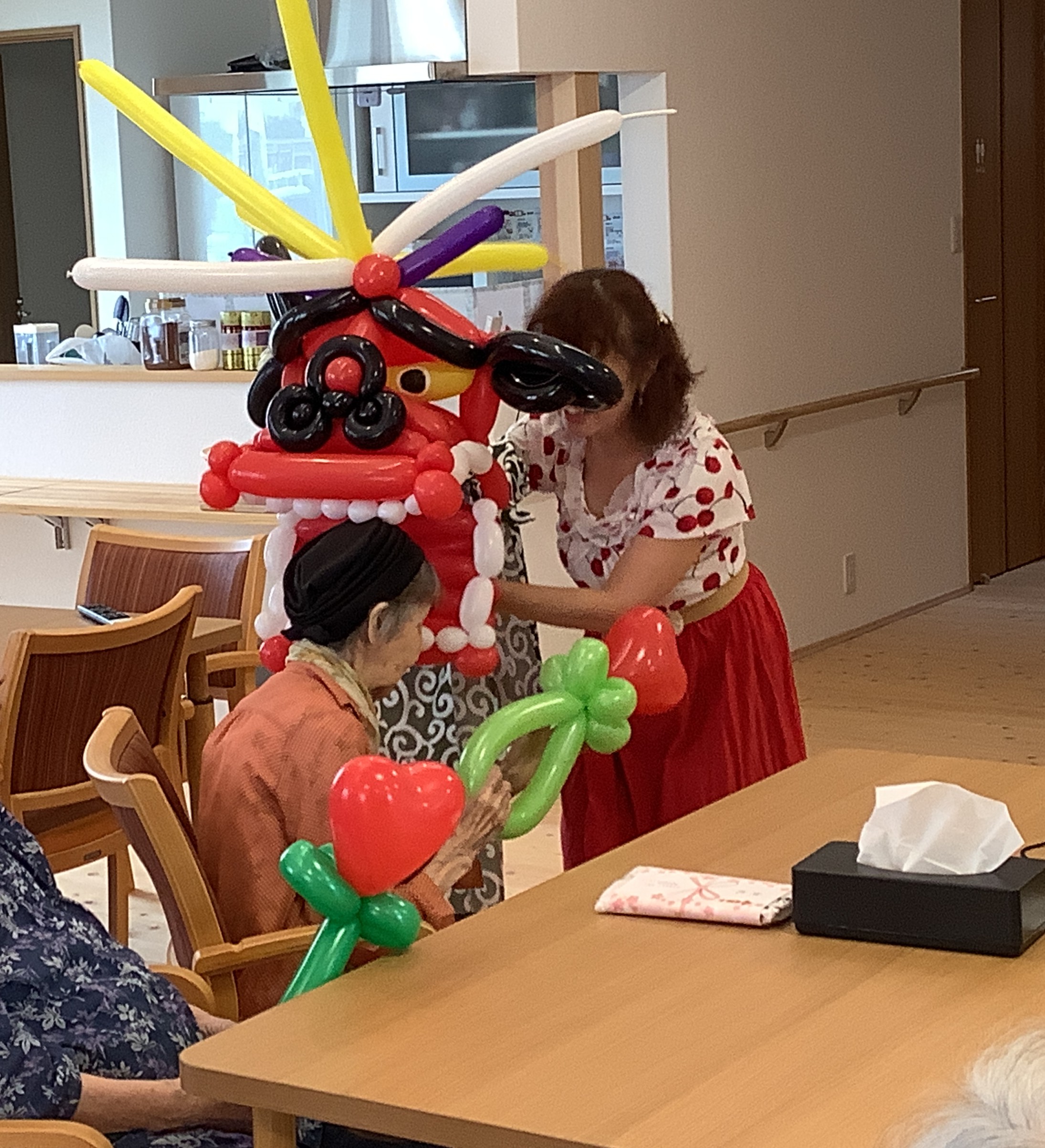 2025.09.25 ブログ 🌸画図重富苑デイサービス🌸ハッピーバルーン☆ハルハル様来苑🎈 先日、画図重富苑デイサービスセンターに、バルーンアーティストの「ハッピーバルーン☆ハルハル」様が来苑してくださいました✨ 目の前で作られる風船のお花に、みなさま拍手喝采でした👏 風船で作られた獅子舞も登場!✨ 「獅子が噛みつくと神が付く」との言い伝えがあり、みなさまの頭を噛んで、これからの無病息災をお祈りして下さいました😄🍀 ハッピーバルーン☆ハルハル様、素敵なパフォーマンスを本当にありがとうございました🎵 ページ送り お知らせ・ブログ一覧 前の記事へ 次の記事へ
