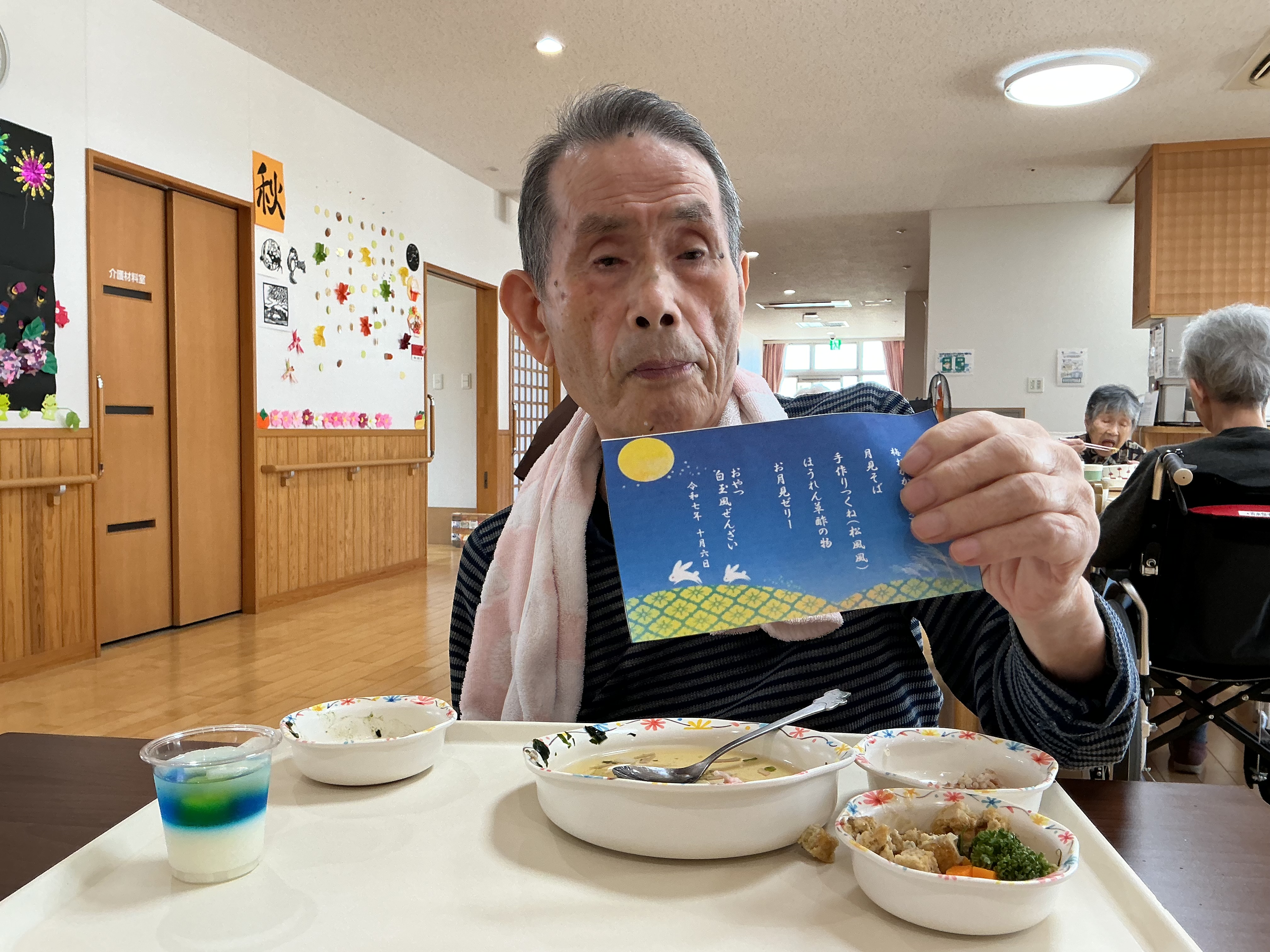 2025.10.06 ブログ お月見🌕 みなさまこんにちは😊 今日は、『中秋の名月』ですね。画図重富苑では、ご入居者様にお月見行事食をお召し上がりいただきました😄 お月見ゼリーのウサギがとても可愛くて好評でした🐰💗 ページ送り お知らせ・ブログ一覧 前の記事へ 次の記事へ