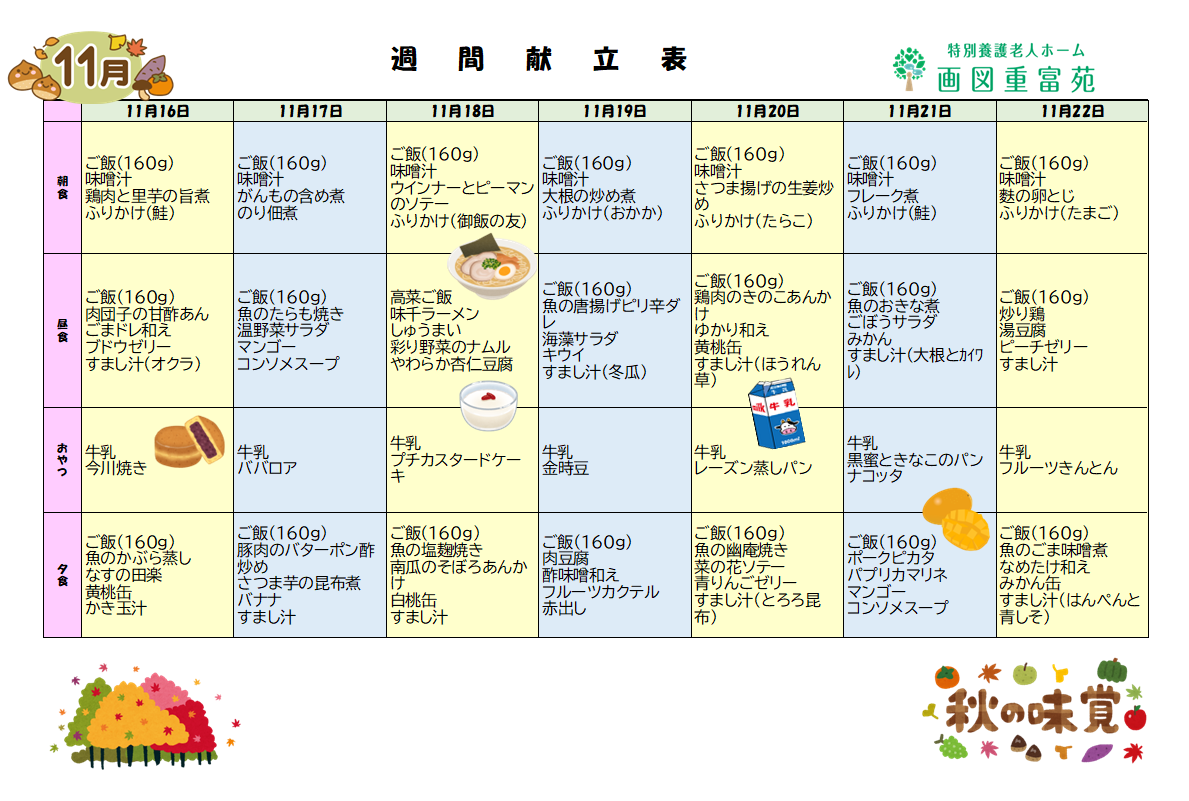今週の献立を掲載いたしますので、ぜひご覧くださいませ✨