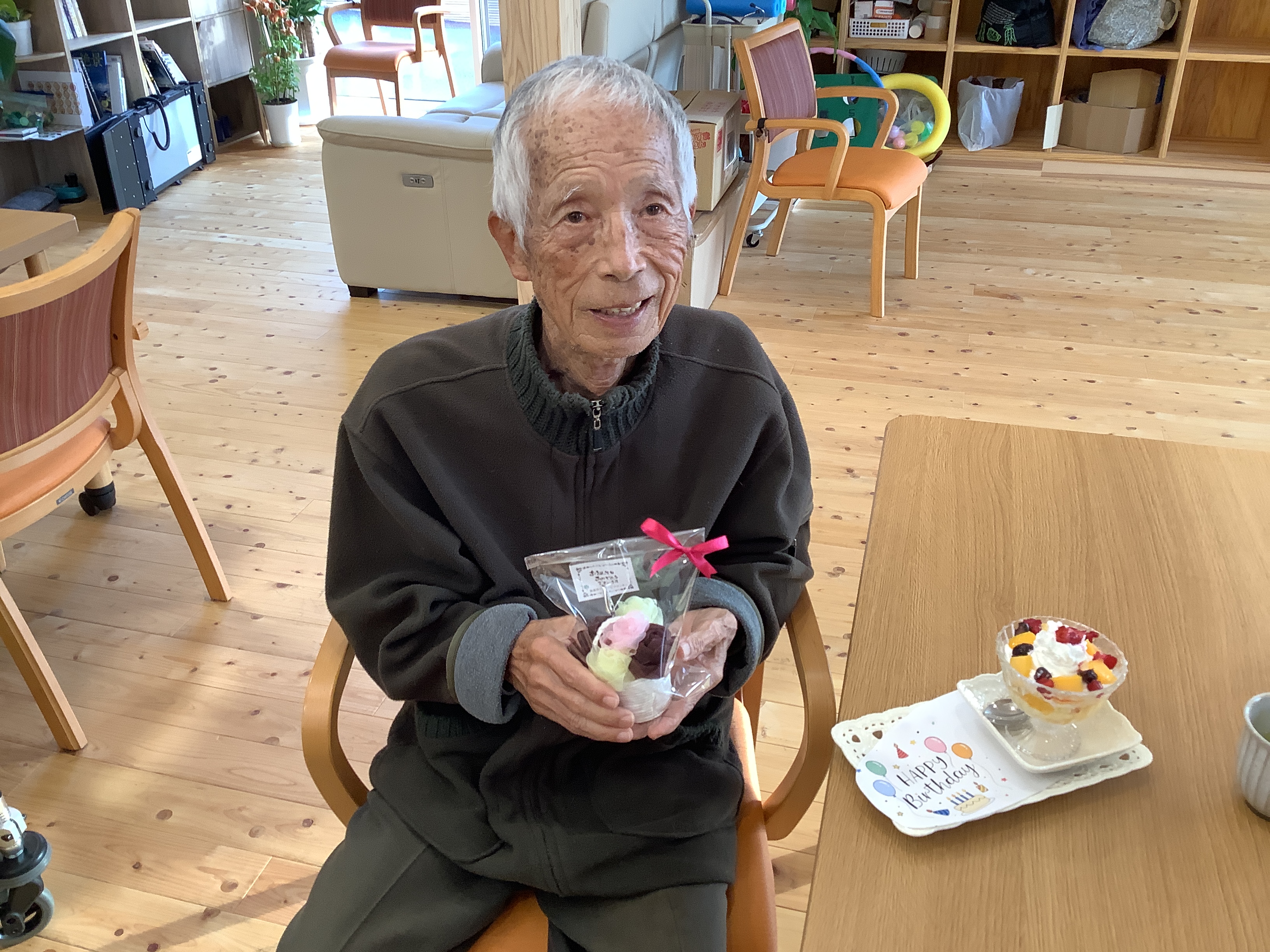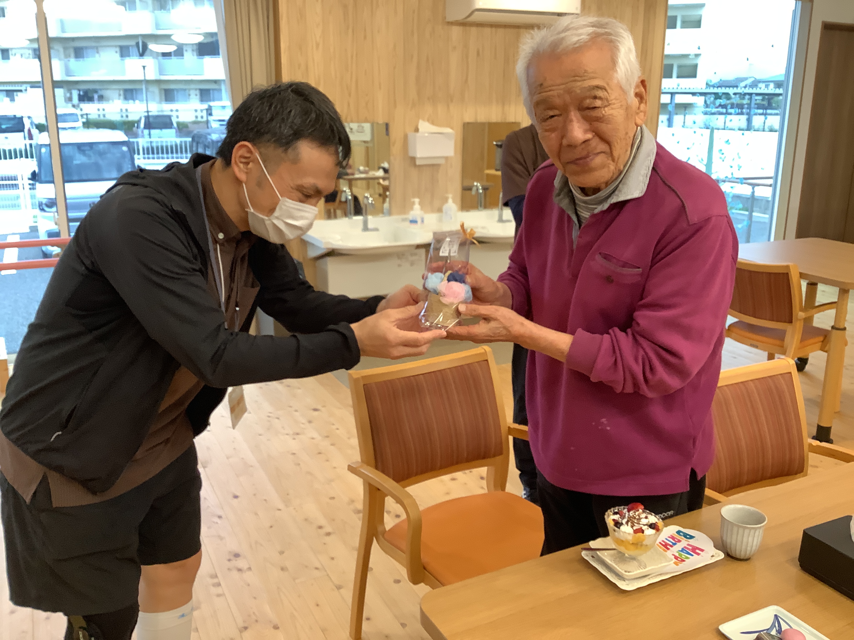 苑からのささやかなプレゼントと、当日ご利用の方と一緒に歌のプレゼントでお祝いしました🎁