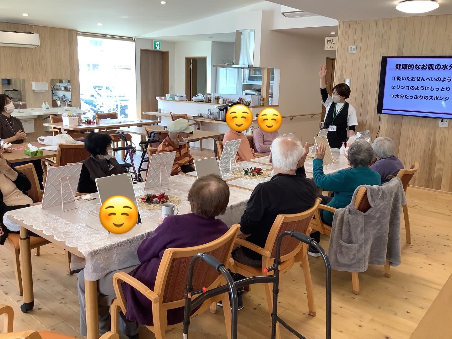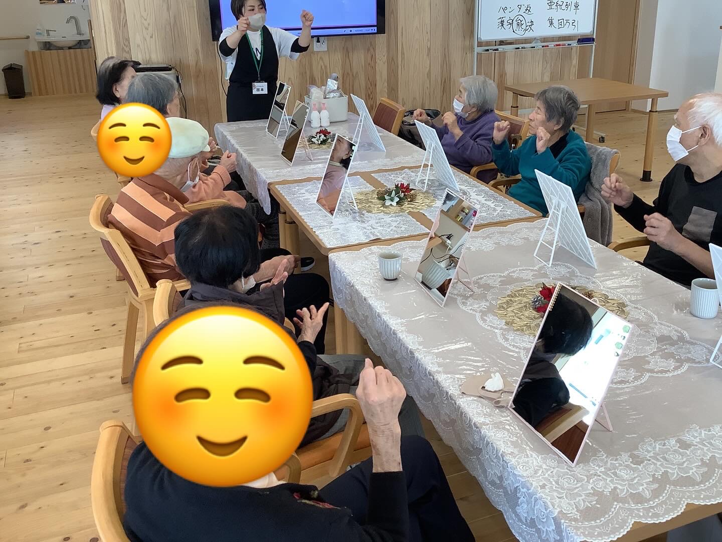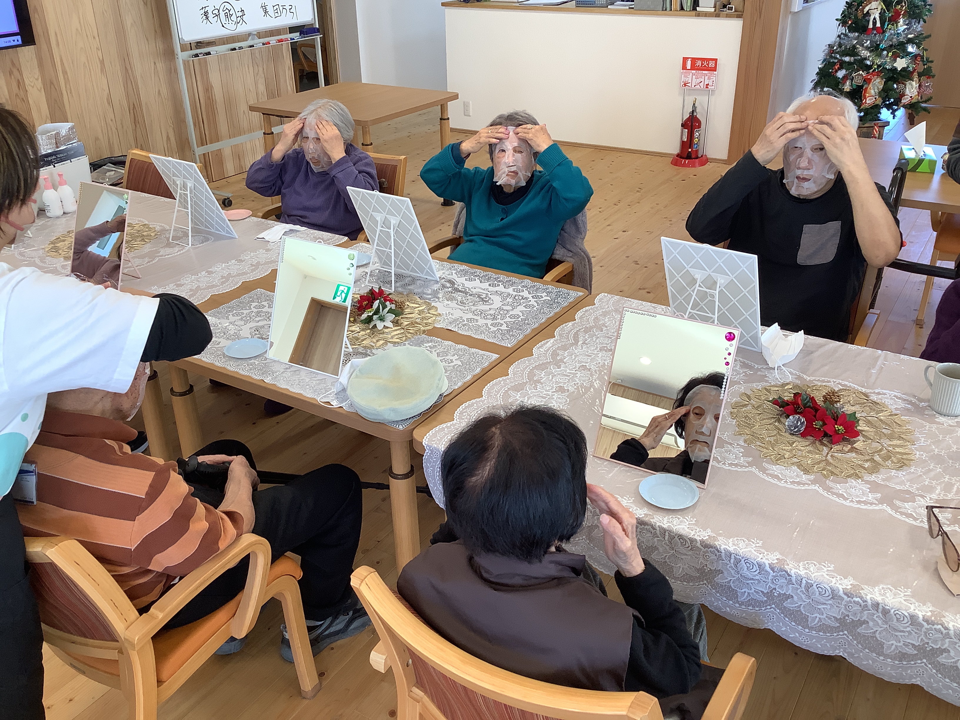 男性のご利用者の中には、初めてパックをされる方もおられ、少し照れながらも、パックを付けた顔を見合わせてニコニコ😊終始賑やかで楽しい時間となりました!