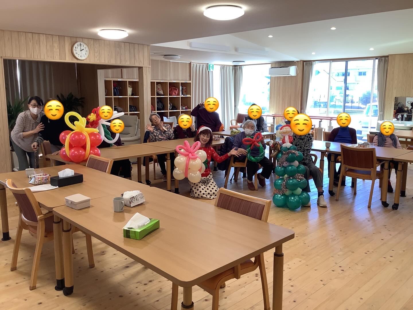 可愛いバルーンのサンタさんがデイサービスセンターの玄関でお出迎えしてくれますよ😊