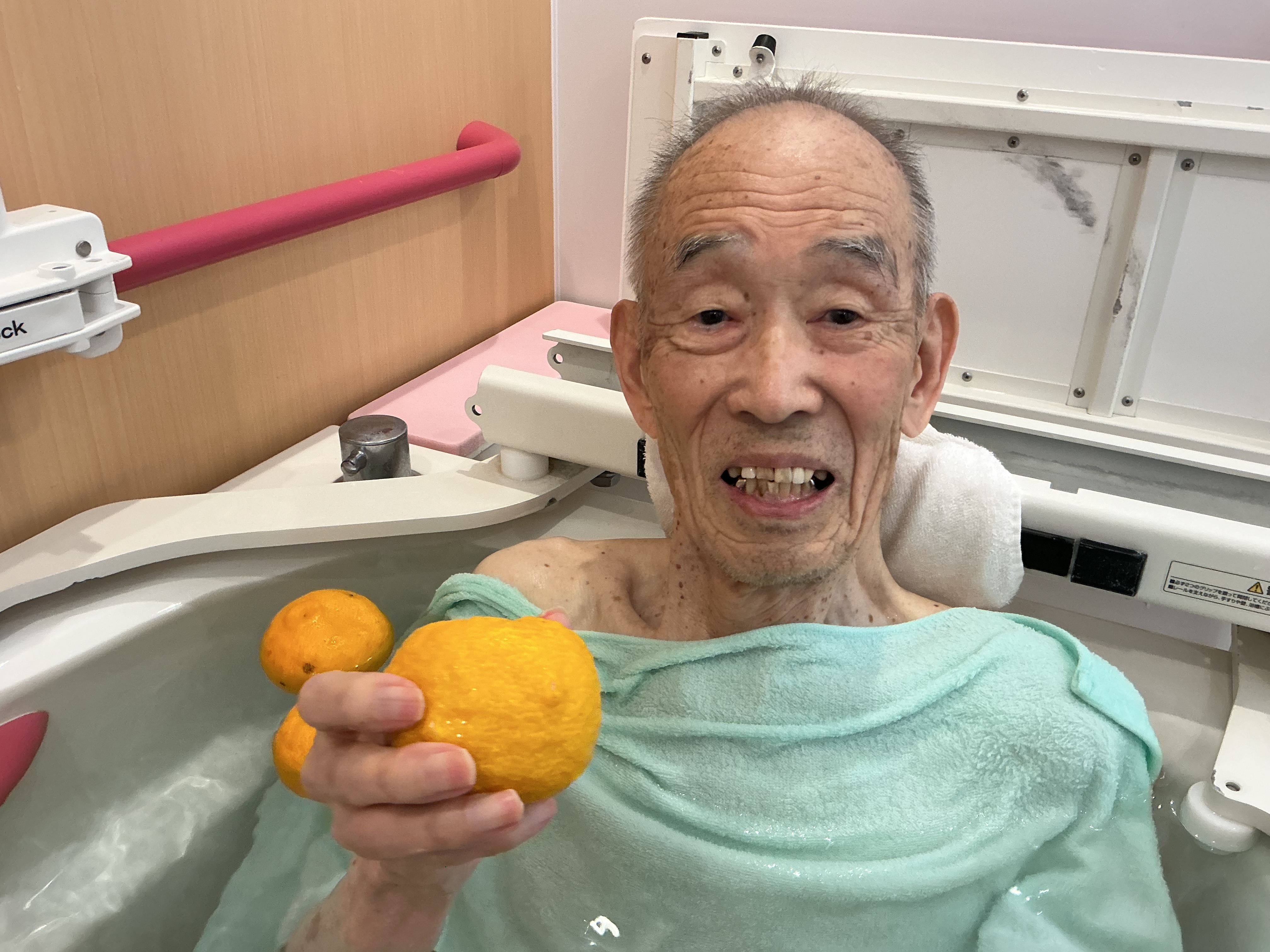 2025.12.24 ブログ ゆず湯🍊 みなさまこんにちは😄 12/22は『冬至』でしたね✨画図重富苑では、12/22~12/24の3日間、『ゆず湯』をご入居者様にお楽しみいただきました🍊 『気持ちよか~』『香りがいいね✨』とおっしゃっており、ゆずを手に取り楽しみながらゆっくりと温まっていただきました😆 ゆず湯で身体もぽかぽか。これから風邪などひかないように皆で元気に過ごしていきたいと思います✊!! ページ送り お知らせ・ブログ一覧 前の記事へ 次の記事へ