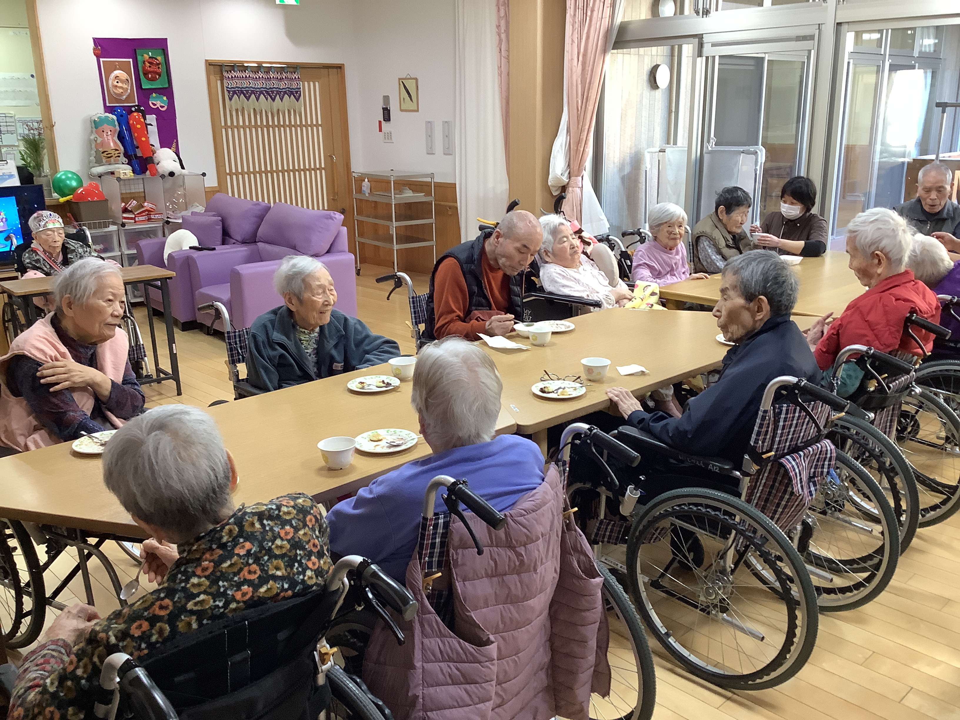 2026.01.13 ブログ 黄紫ユニット新年会&お誕生会🎂 みなさまこんにちは😊 今日は黄紫ユニットで新年会&お誕生会が行われました!! 新年会では、『じゃがいも餅』を作り、『甘酒』と一緒にお召し上がりいただきました🍵 お誕生会では、黄ユニットのご入居者様が今日で87歳のお誕生日を迎えられました🎉 皆でバースデーソングを歌ってお祝いしました💗 お誕生日おめでとうございます😆✨ ページ送り お知らせ・ブログ一覧 前の記事へ 次の記事へ