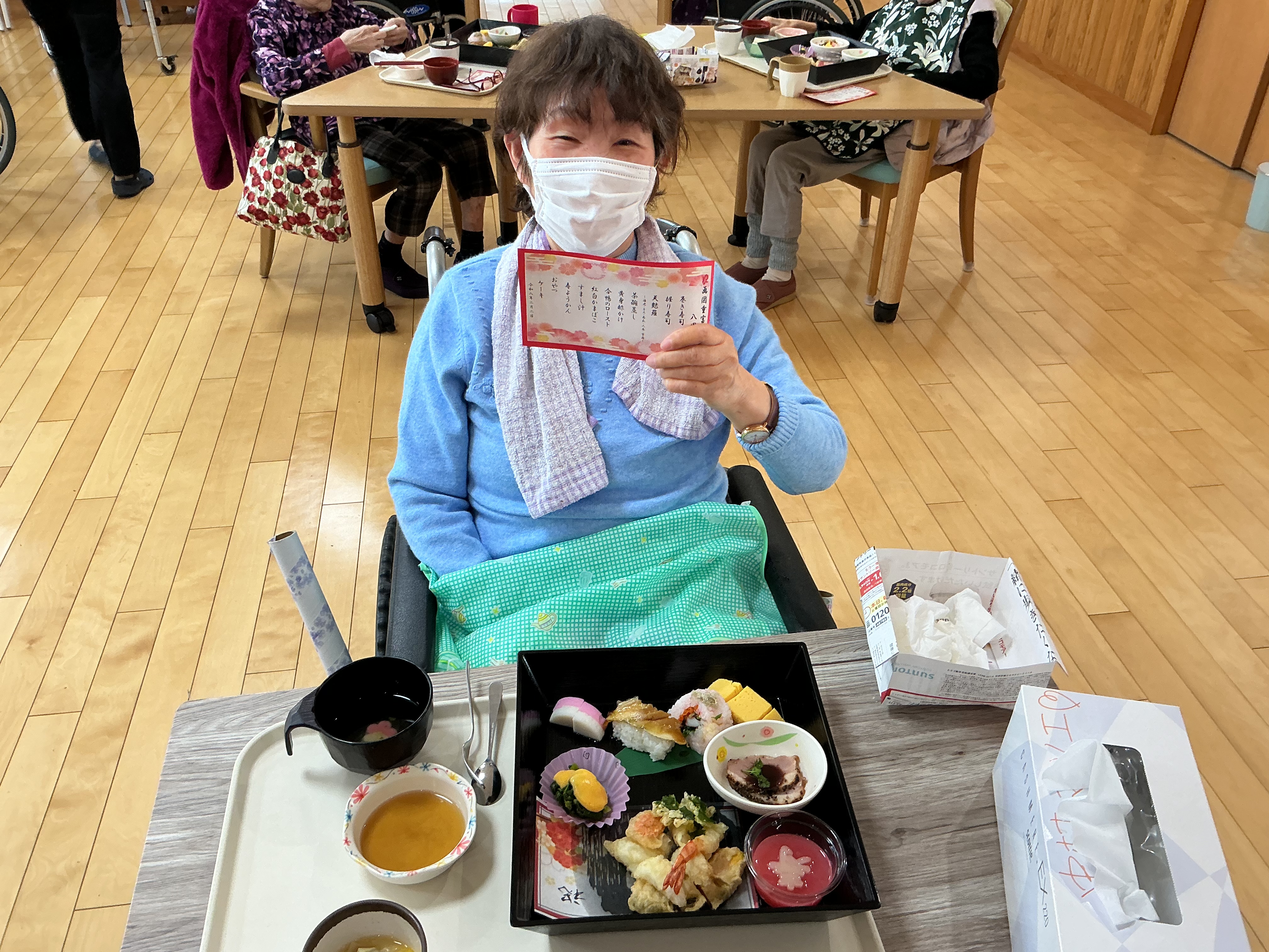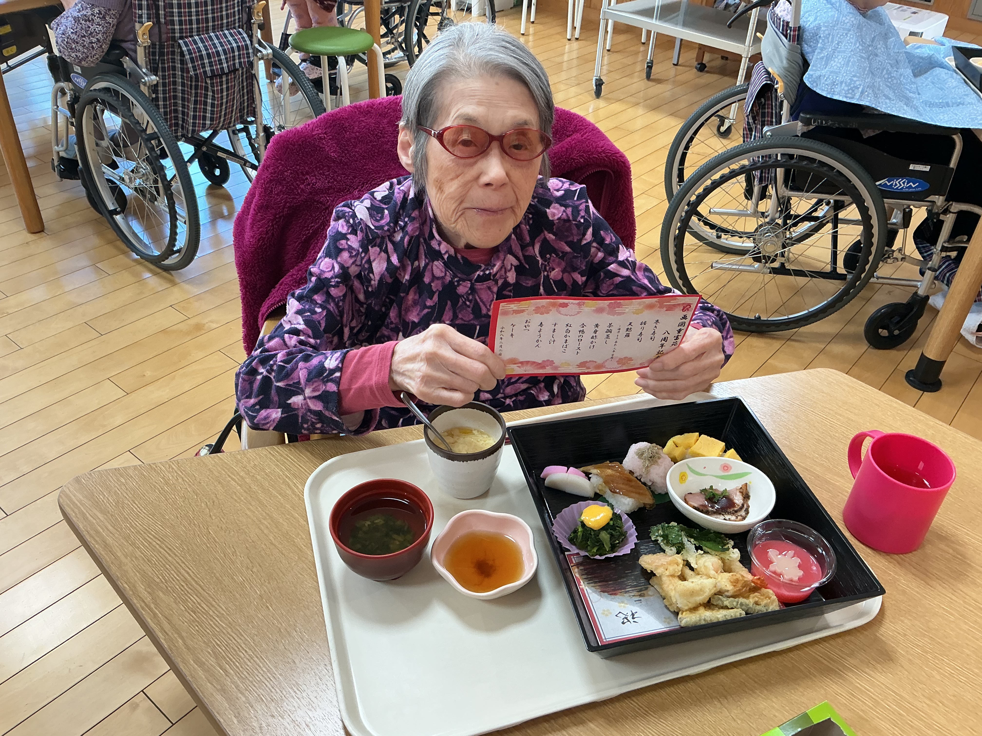 ご入居者様に、日頃の感謝の気持ちを込めてお祝いの行事食をお召し上がりいただきました🍽️✨