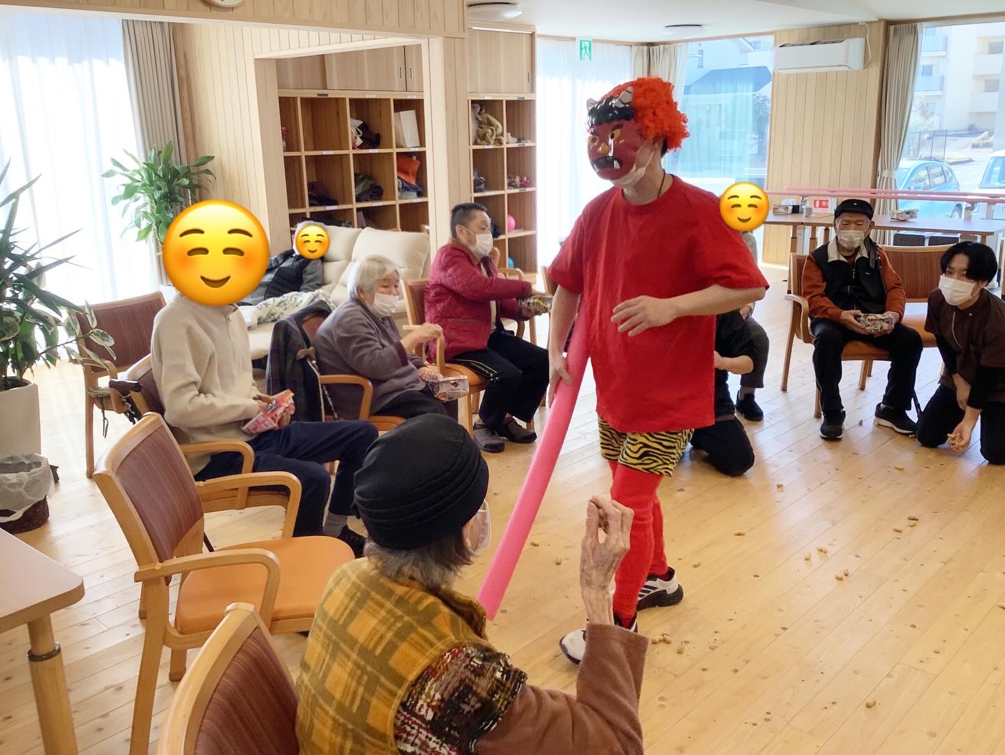 2026.02.09 ブログ 🌸画図重富苑デイサービス🌸節分👹 みなさまこんにちは😊 2月3日は節分でしたね👹 画図重富苑デイサービスセンターにも、鬼が現れました!! 「鬼は~そと~、福は~、うち~!」と豆を投げて鬼退治をしました🫘 今年一年みなさんが元気で過ごせますように・・・✨ ページ送り お知らせ・ブログ一覧 前の記事へ 次の記事へ