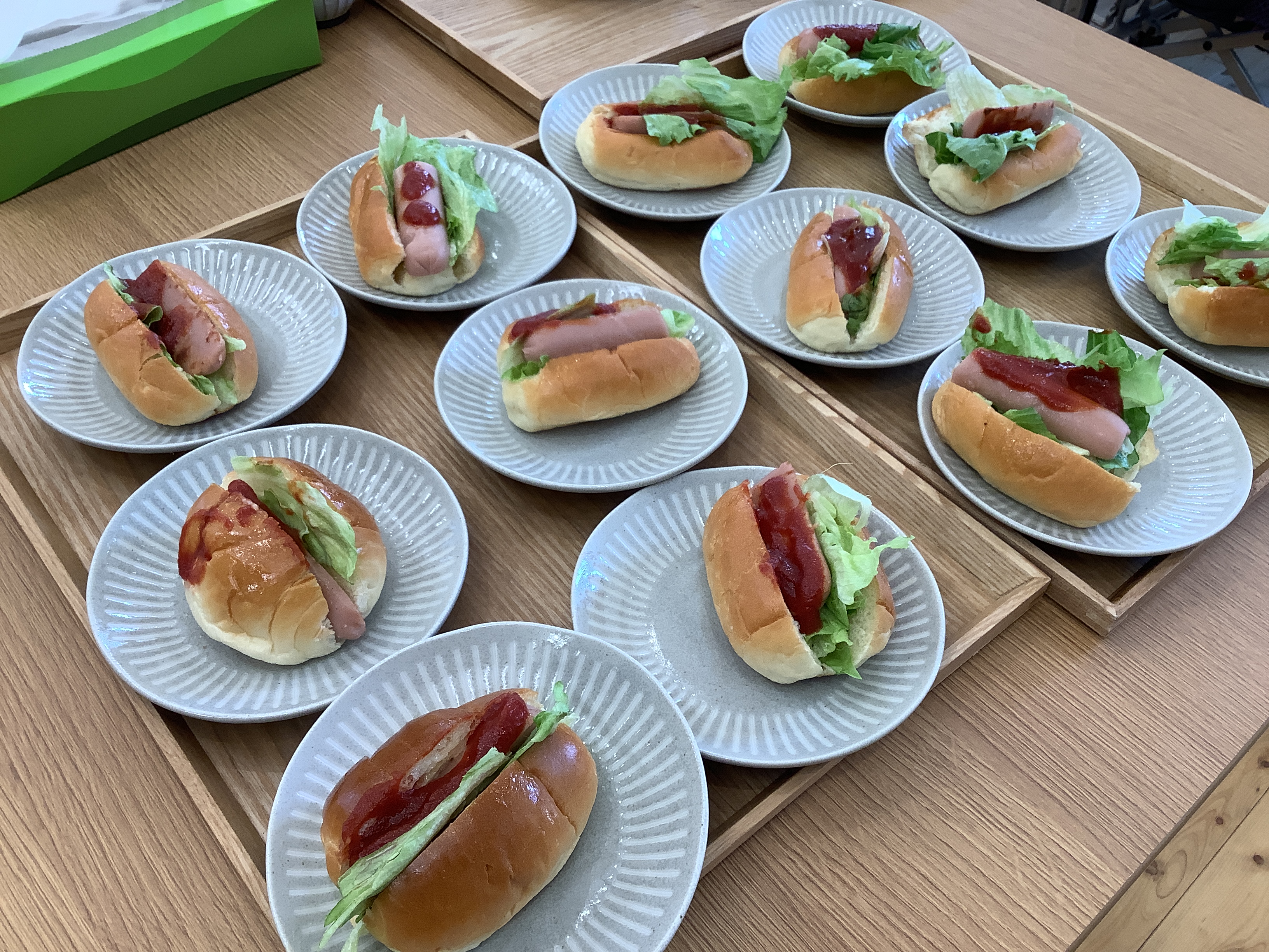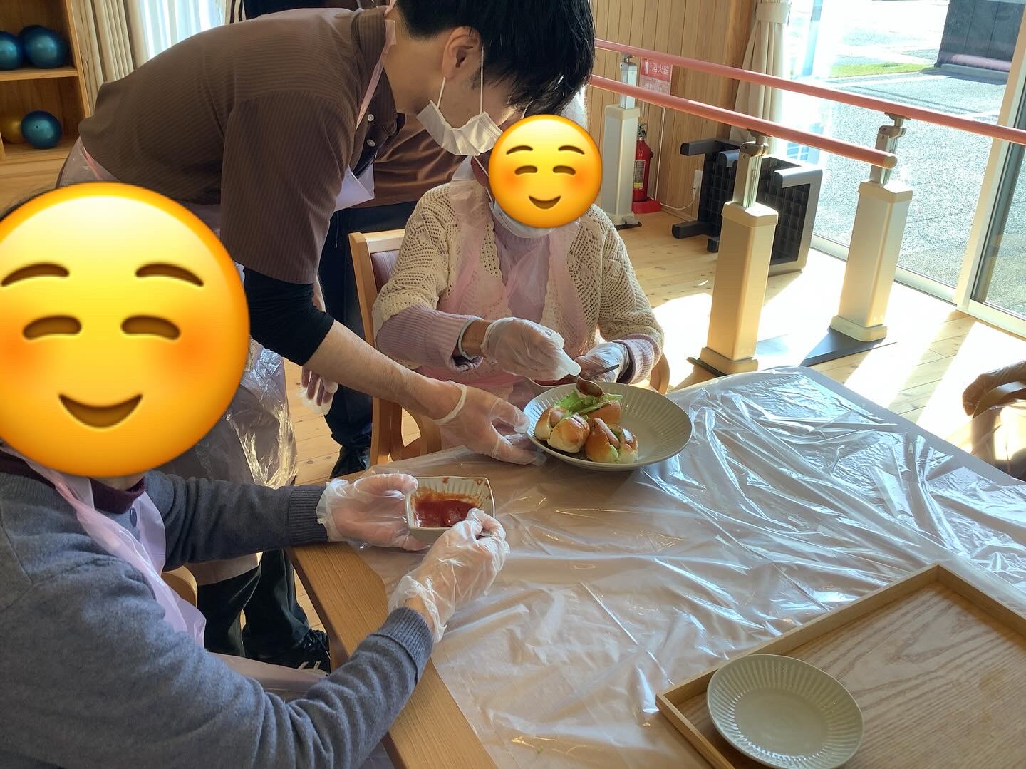 2026.04.07 ブログ 🌸画図重富苑デイサービス🌸ホットドック作り🌭 みなさまこんにちは😄 画図重富苑デイサービスセンターにて、おやつレクリエーションでホットドッグ作りを行いました😊 レタスをちぎり、包丁を使いパンやソーセージを切るなど、それぞれ役割分担をして準備を行いました✨ ホットプレートで焦げ目をつけ、パンに具材を詰めて、最後にケチャップをかけたら出来上がりです!! 「おいしそうなにおいがしてきたねー」とワクワク🎵 おやつでみなさんで召し上がっていただき「美味しいね😋」と楽しいひとときとなりました✨ ページ送り お知らせ・ブログ一覧 前の記事へ 次の記事へ