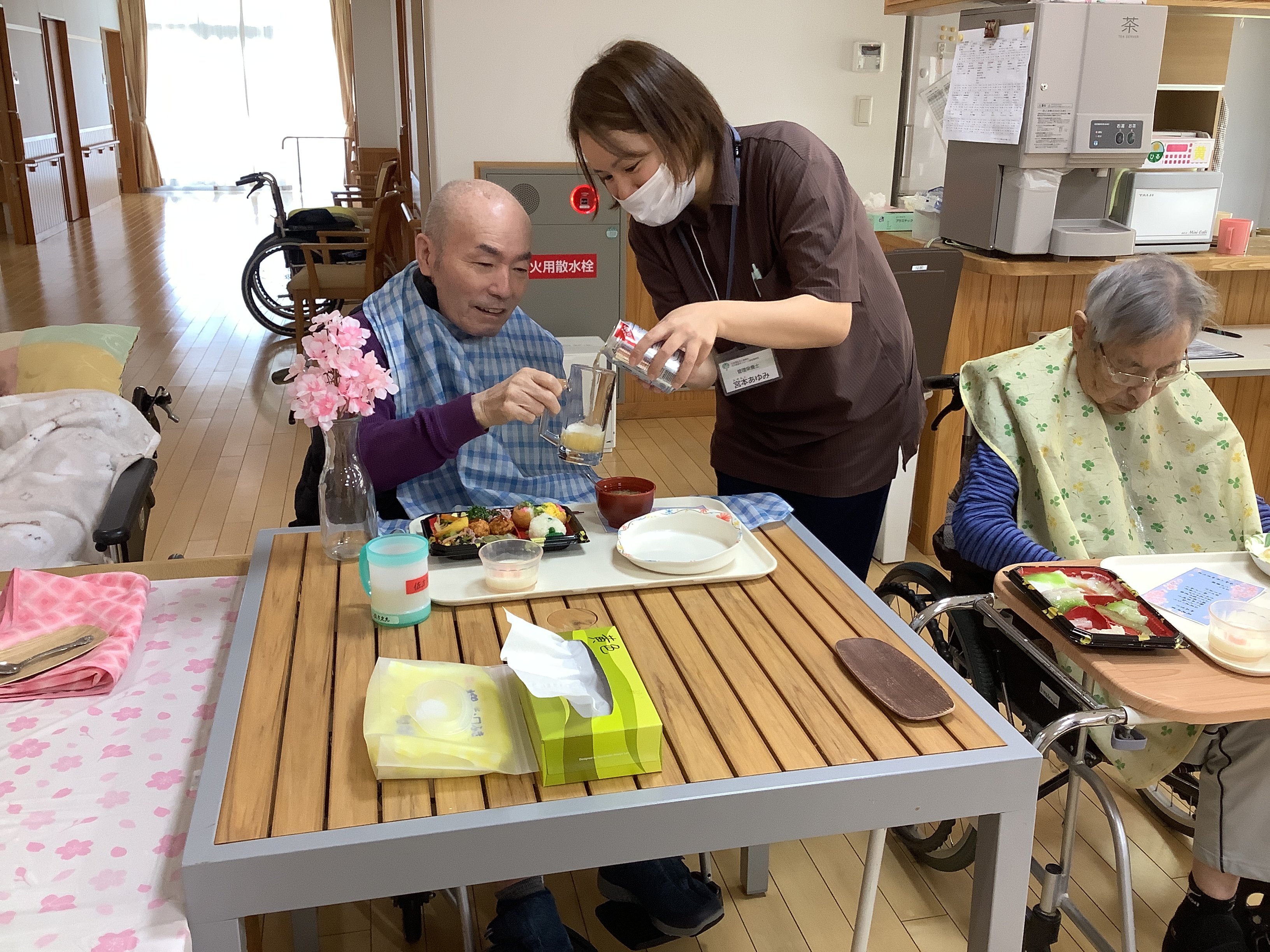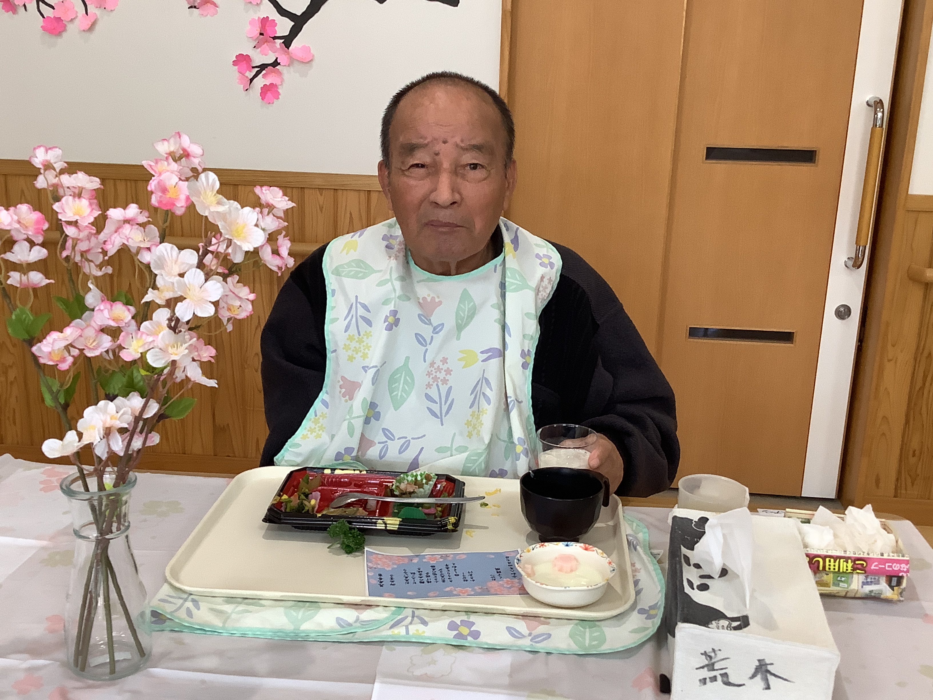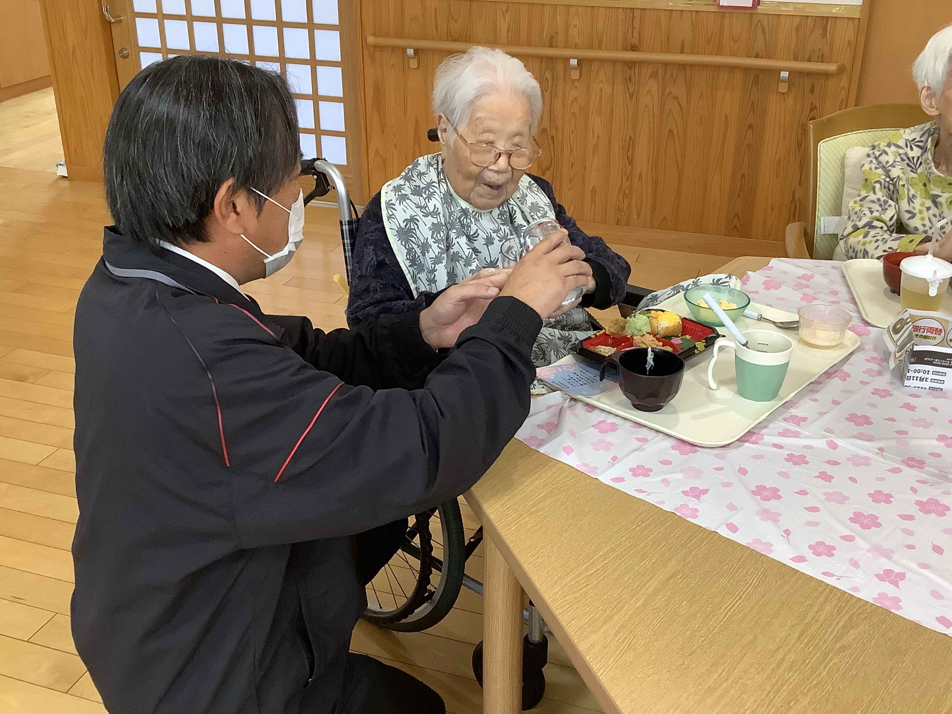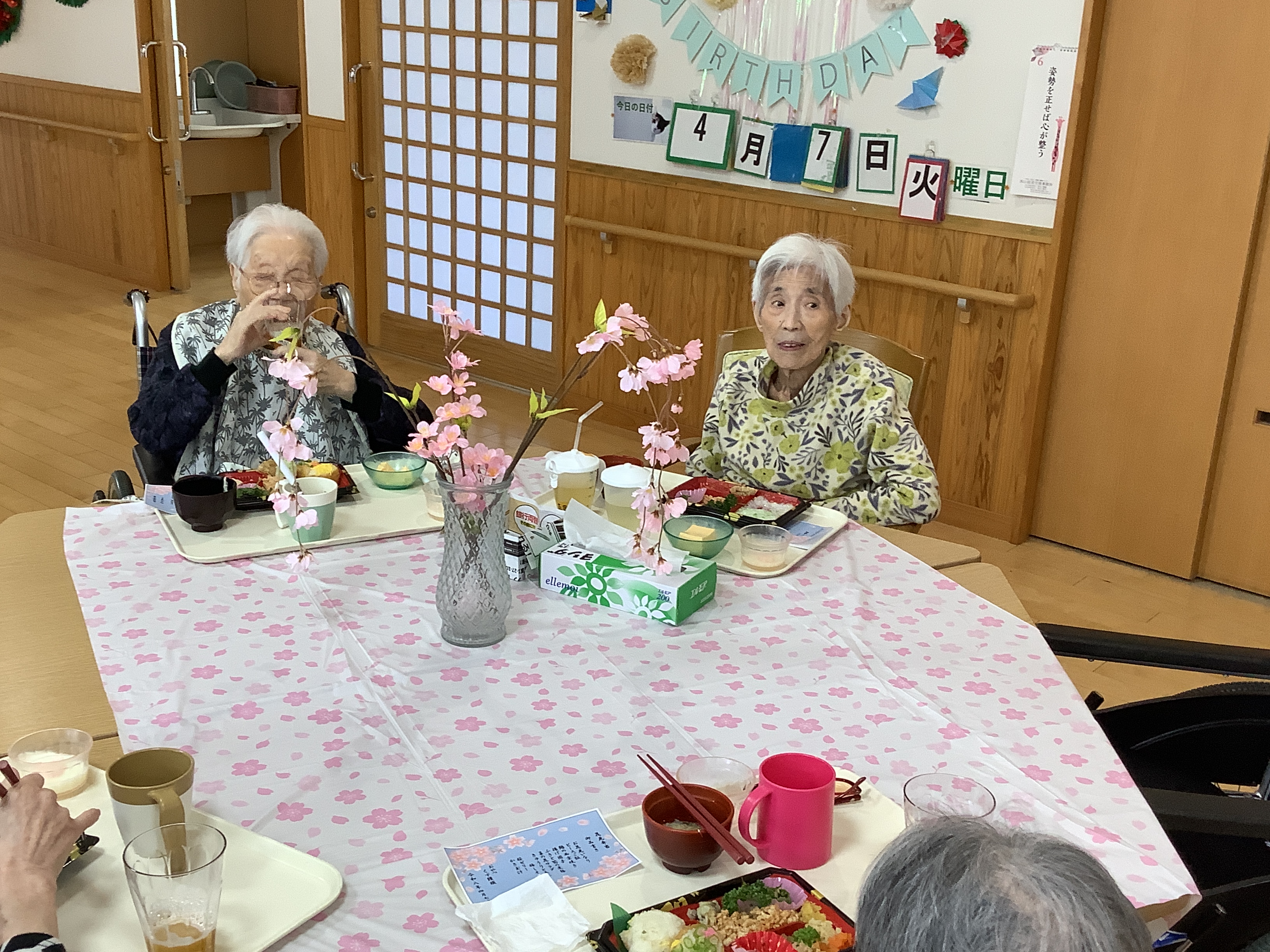 4月7日は行事食として、皆さんと一緒にお花見弁当をいただきました。