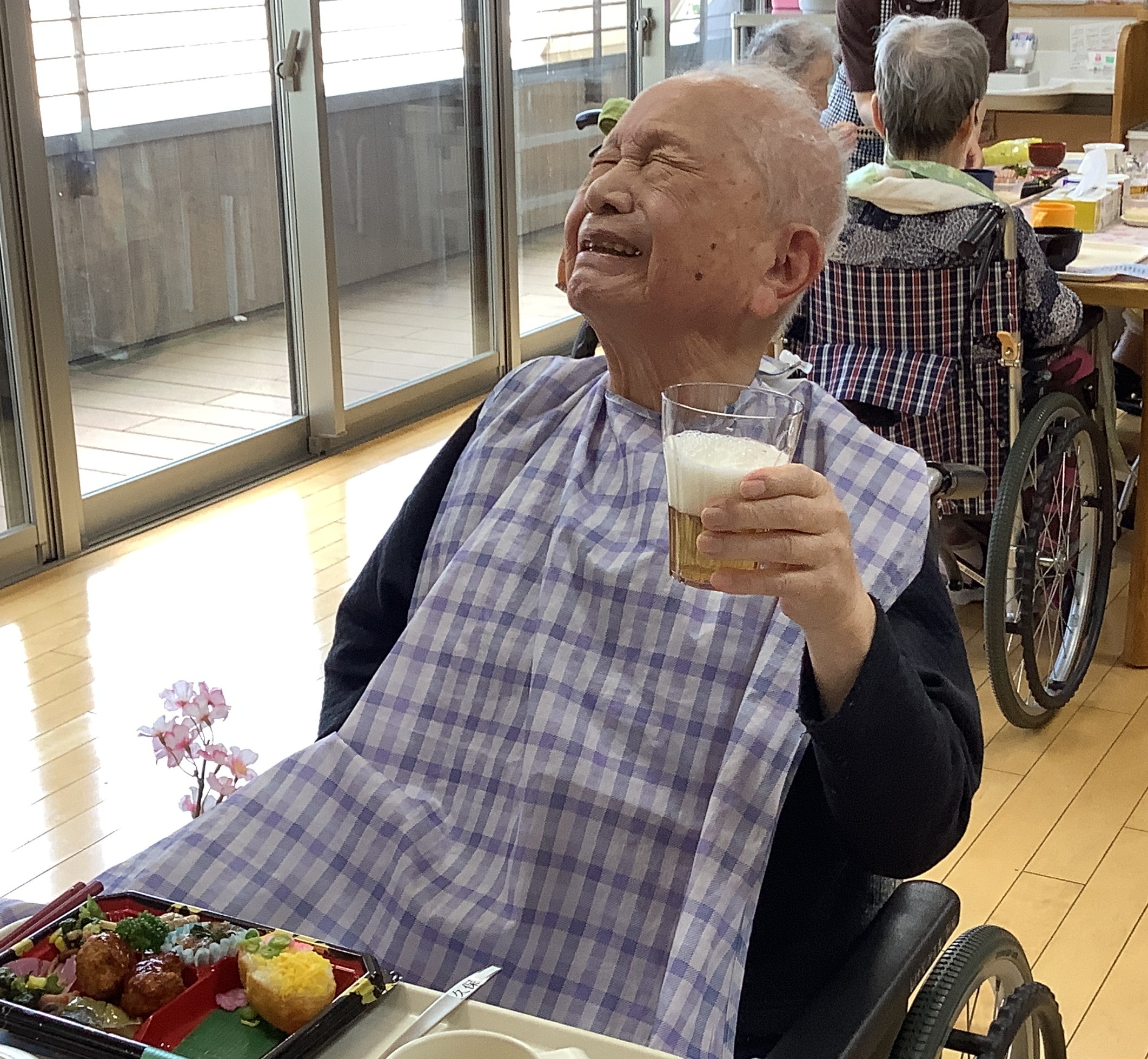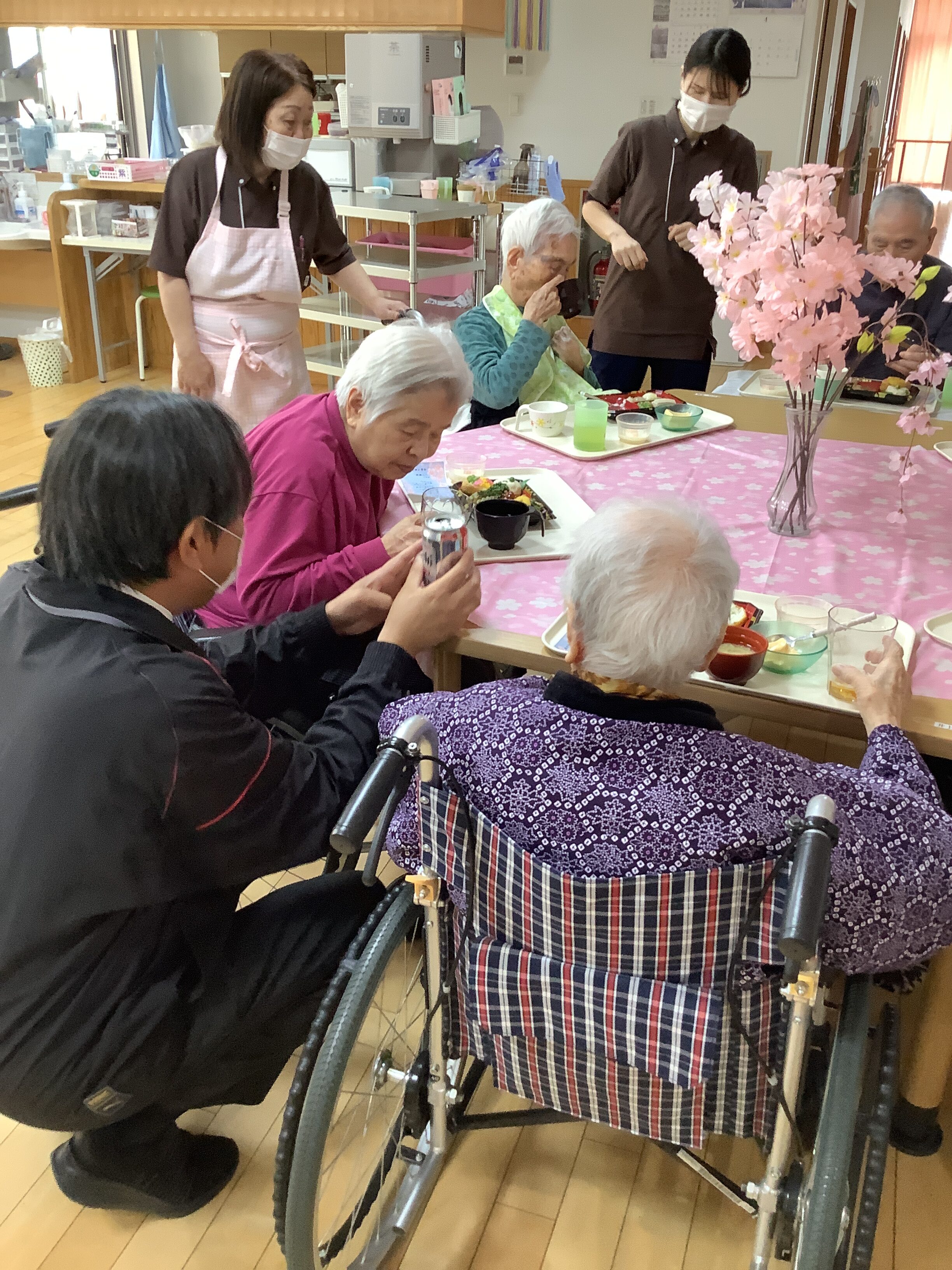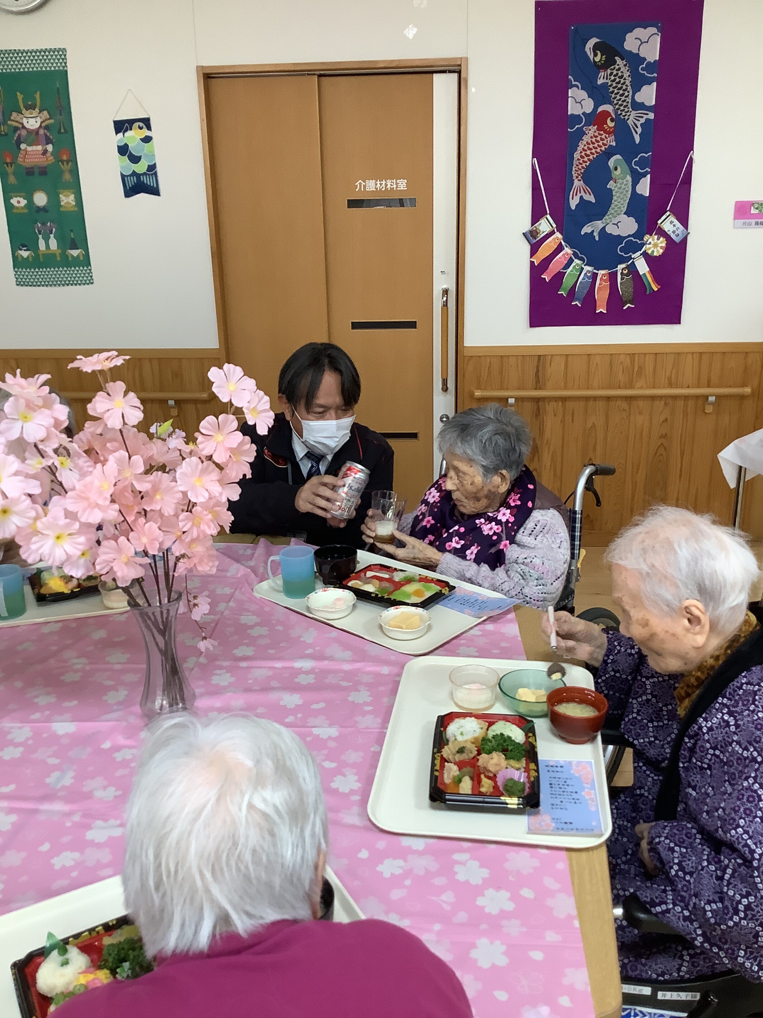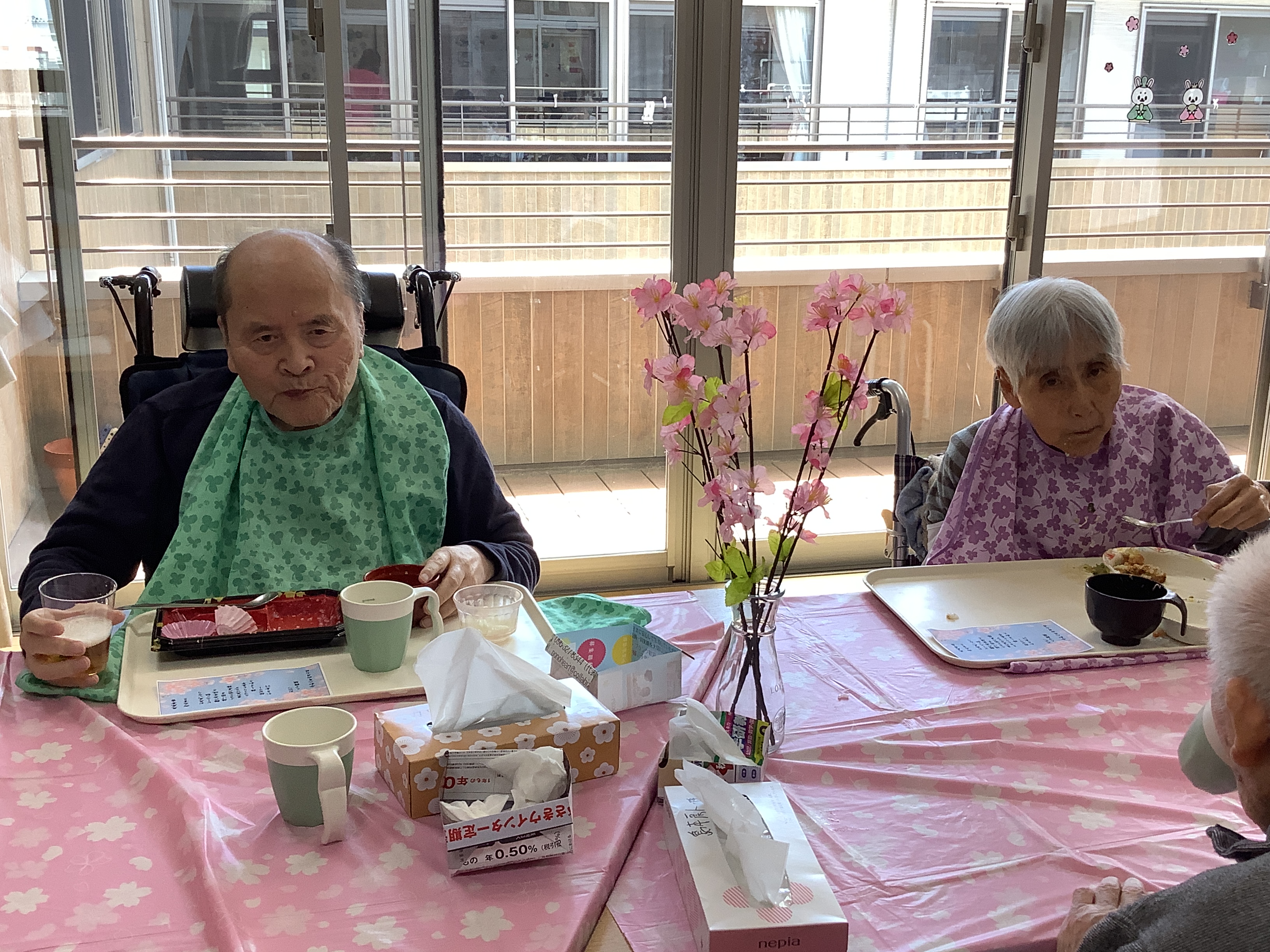 4月7日は行事食として、皆さんと一緒にお花見弁当をいただきました。