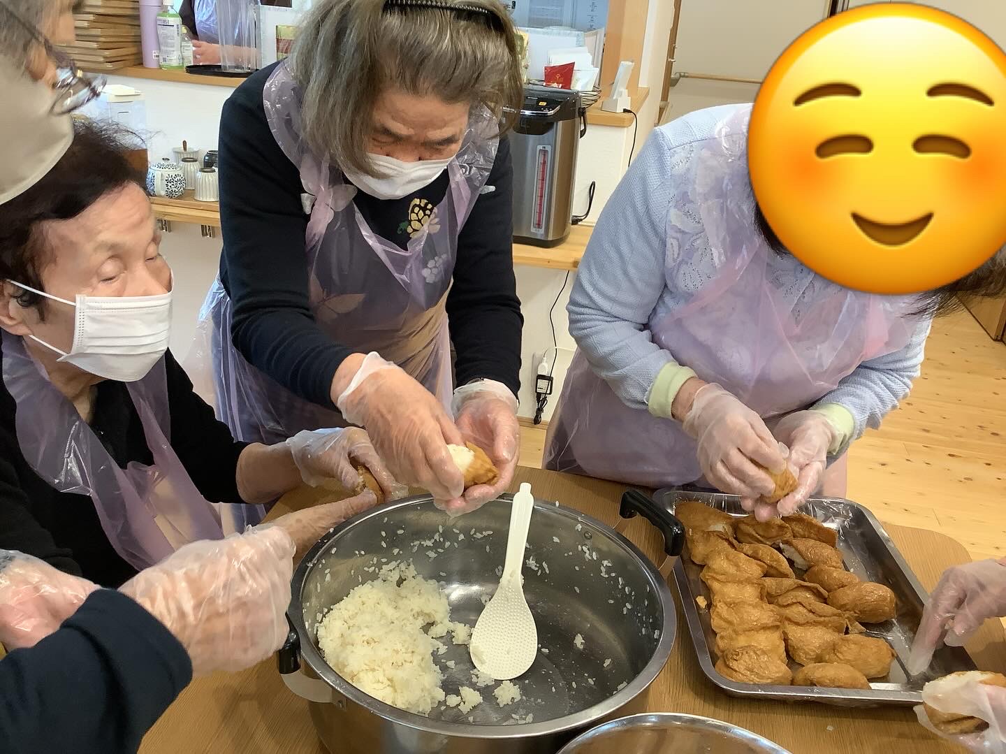 画図重富苑デイサービスセンターにて、調理レク「南関揚げの巻き寿司」「稲荷寿司」作りを行いました🍴
