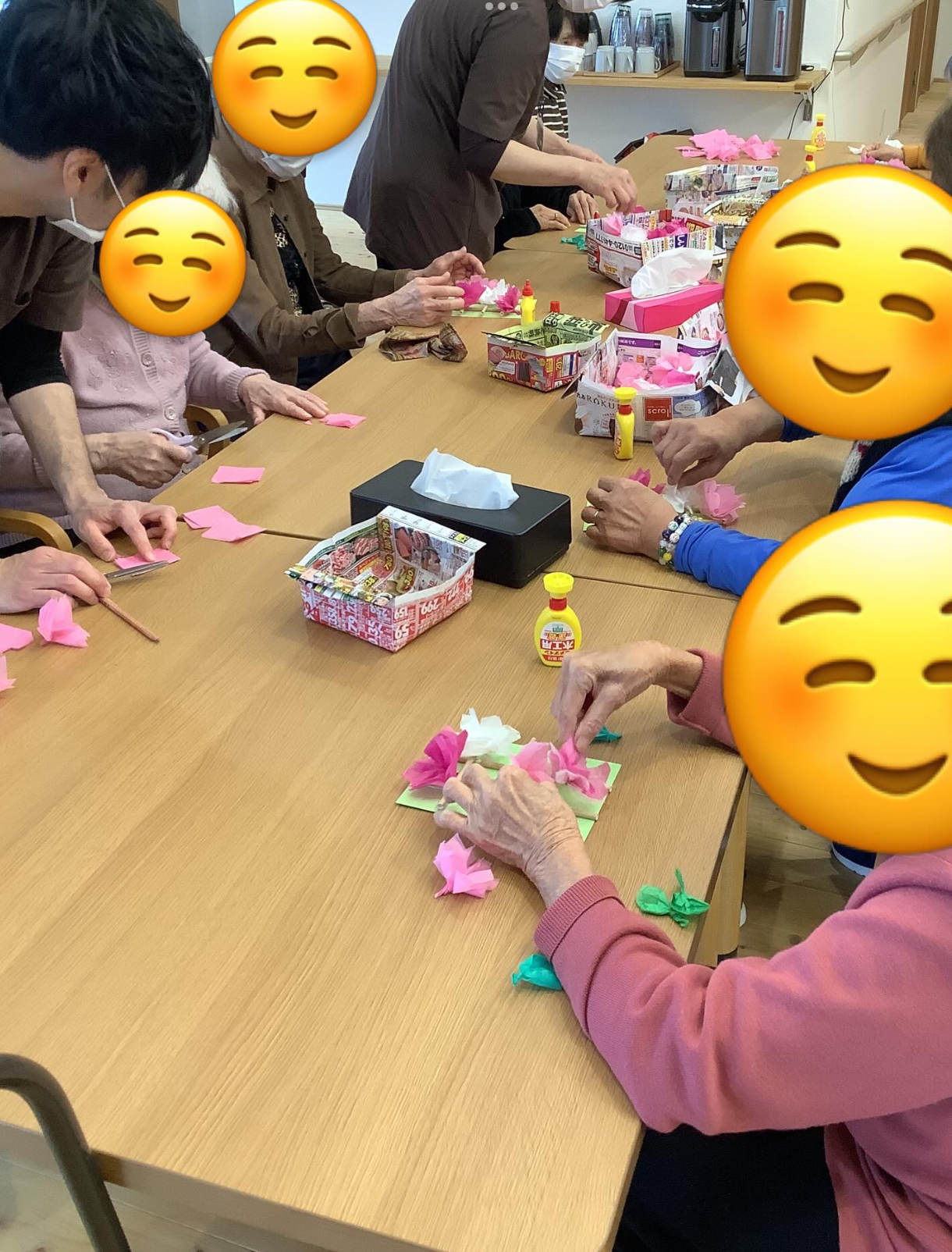 「かわいいね💕」「色がいいね🍀」「たくさんつけた方が可愛いかな😋」と和やかな雰囲気で活動が出来ました!!